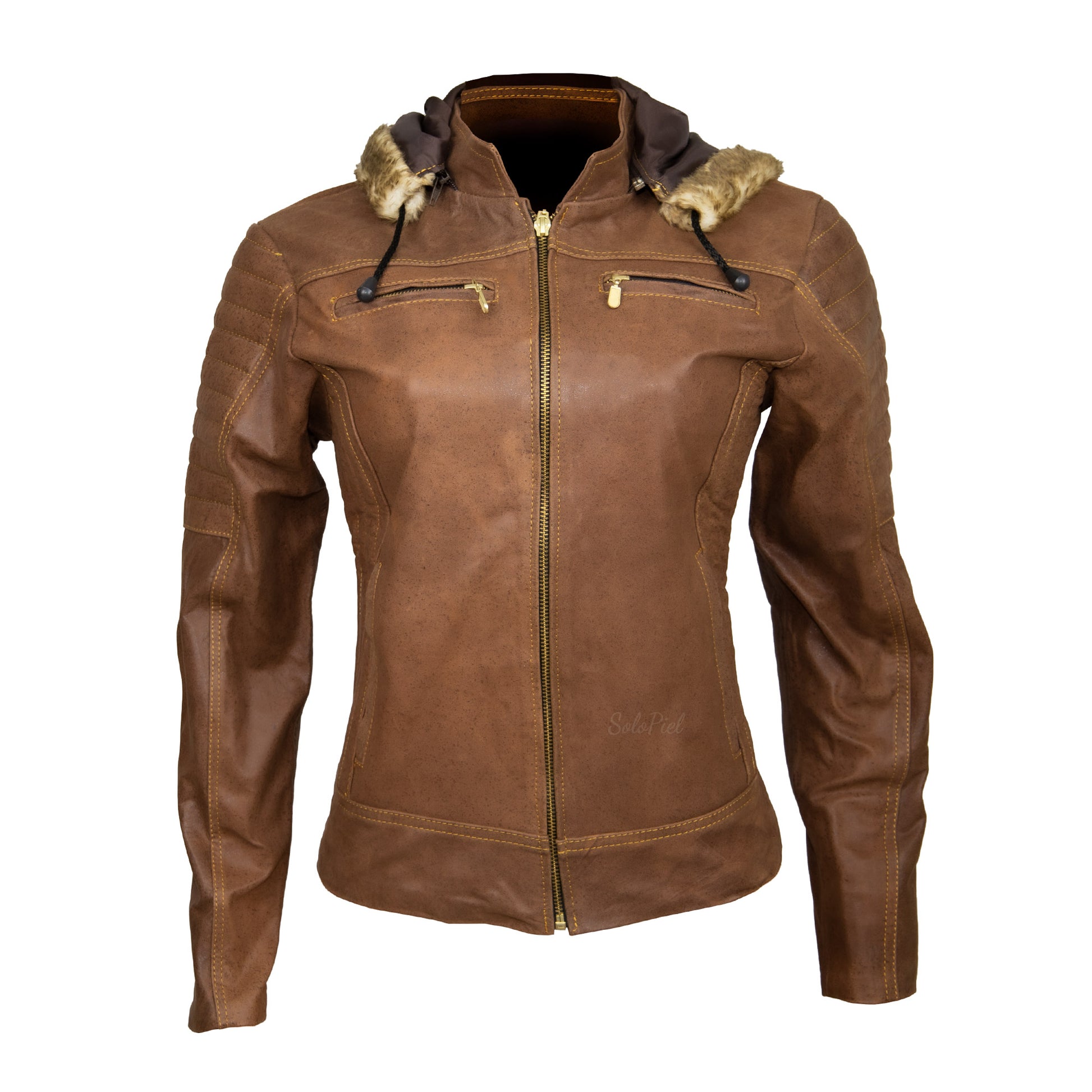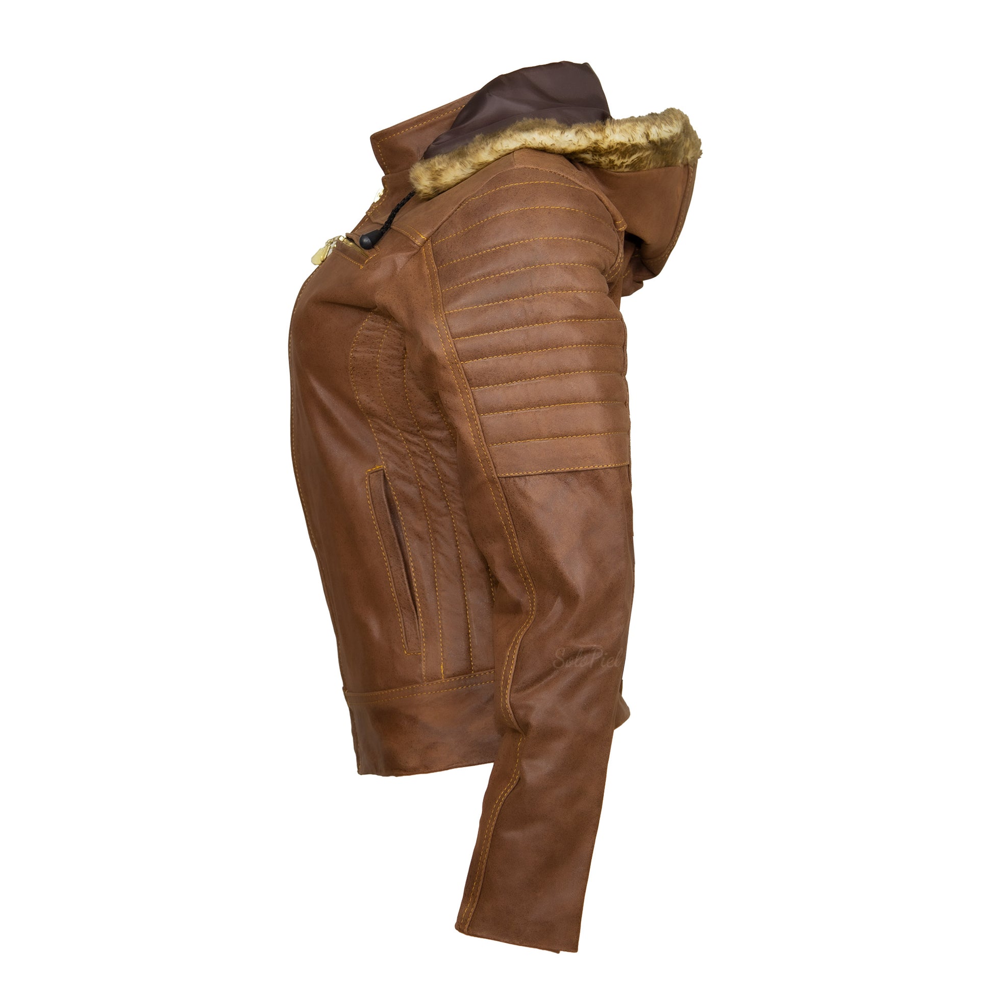 Chamarra de Piel de Borrego para Dama Con Capucha Desmontable Lucia