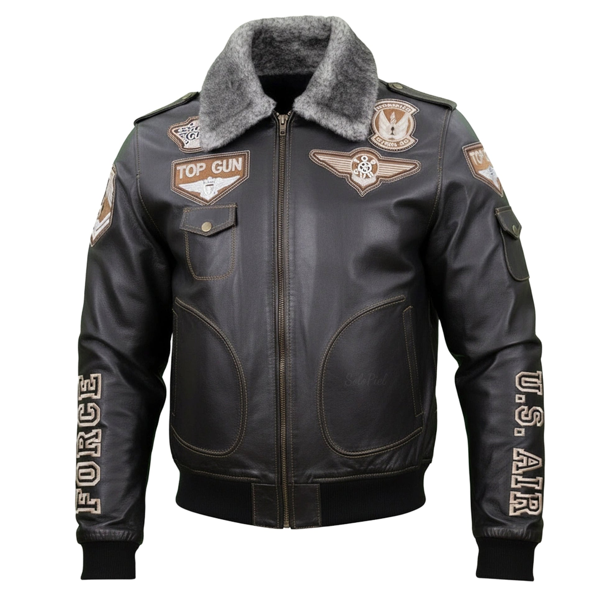 Chamarra de Piel de Borrego para Caballero Cuello Desmontable Piloto TopGun